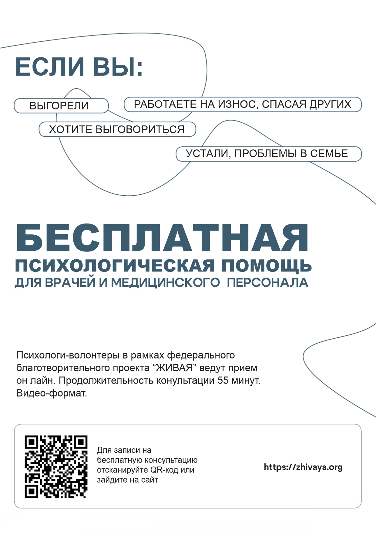«ЖИВАЯ» - это федеральный благотворительный проект, который в круглосуточном режиме оказывает бесплатную психологическую поддержку людям независимо от их места проживания и уровня дохода. С августа 2025 года сервис расширил свои направления работы и запустил специальную линию поддержки медицинских работников.